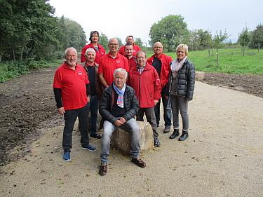 Die Erdarbeiten sind weitestgehend abgeschlossen. Die "Möblierung" aus Solitärsteinen und Holzstämmen ist ebenfalls bereits vorhanden. Daher hat sich der Ortsvereinsvorstand die Gelegenheit nicht entgehen lassen, die bei der Präsentation der Planung nur im Kopfkino gebildeten Vorstellungen mit den fertigen Zuständen abzugleichen.