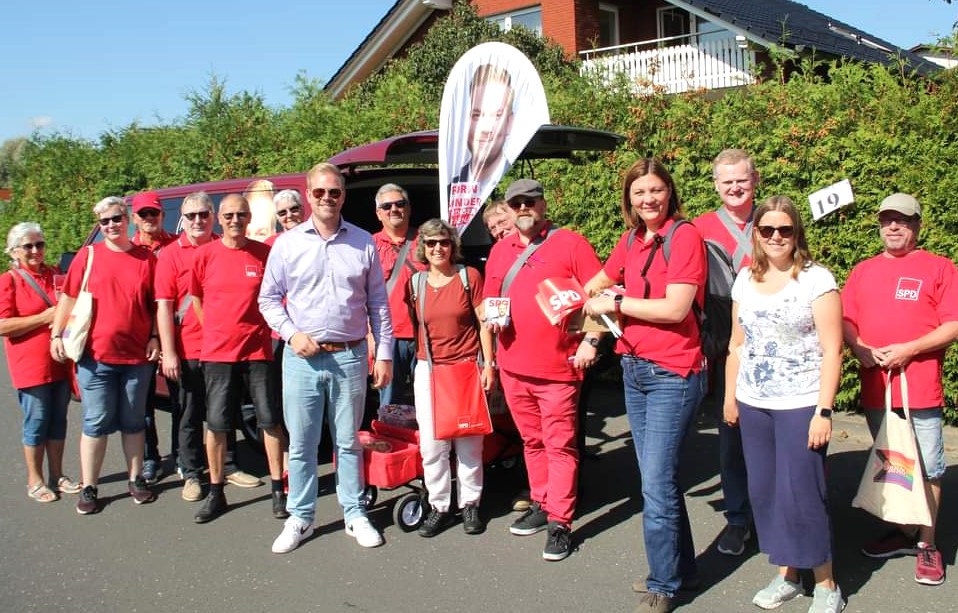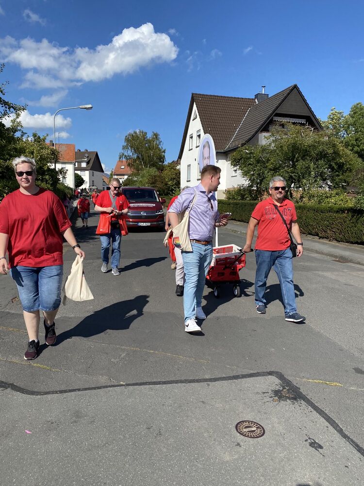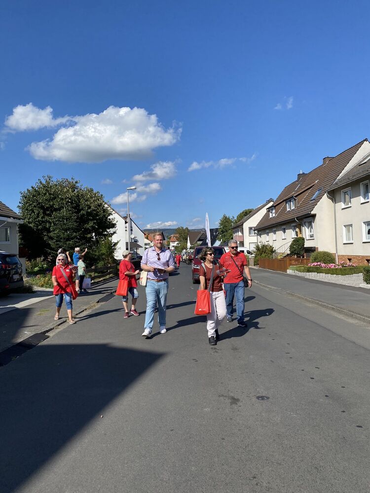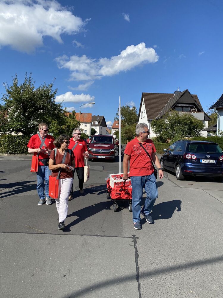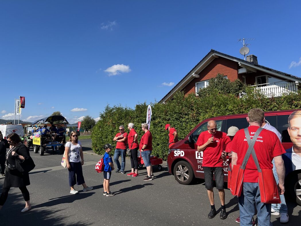 Bei bestem spätsommerlichem Wetter mit Sonne pur säumten zahlreiche Zuschauer, unter denen man vielen Bekannten „Hallo“ sagen konnte, die Straßenränder und nahmen die vom SPD-Team verteilten Give-aways gerne in Empfang.